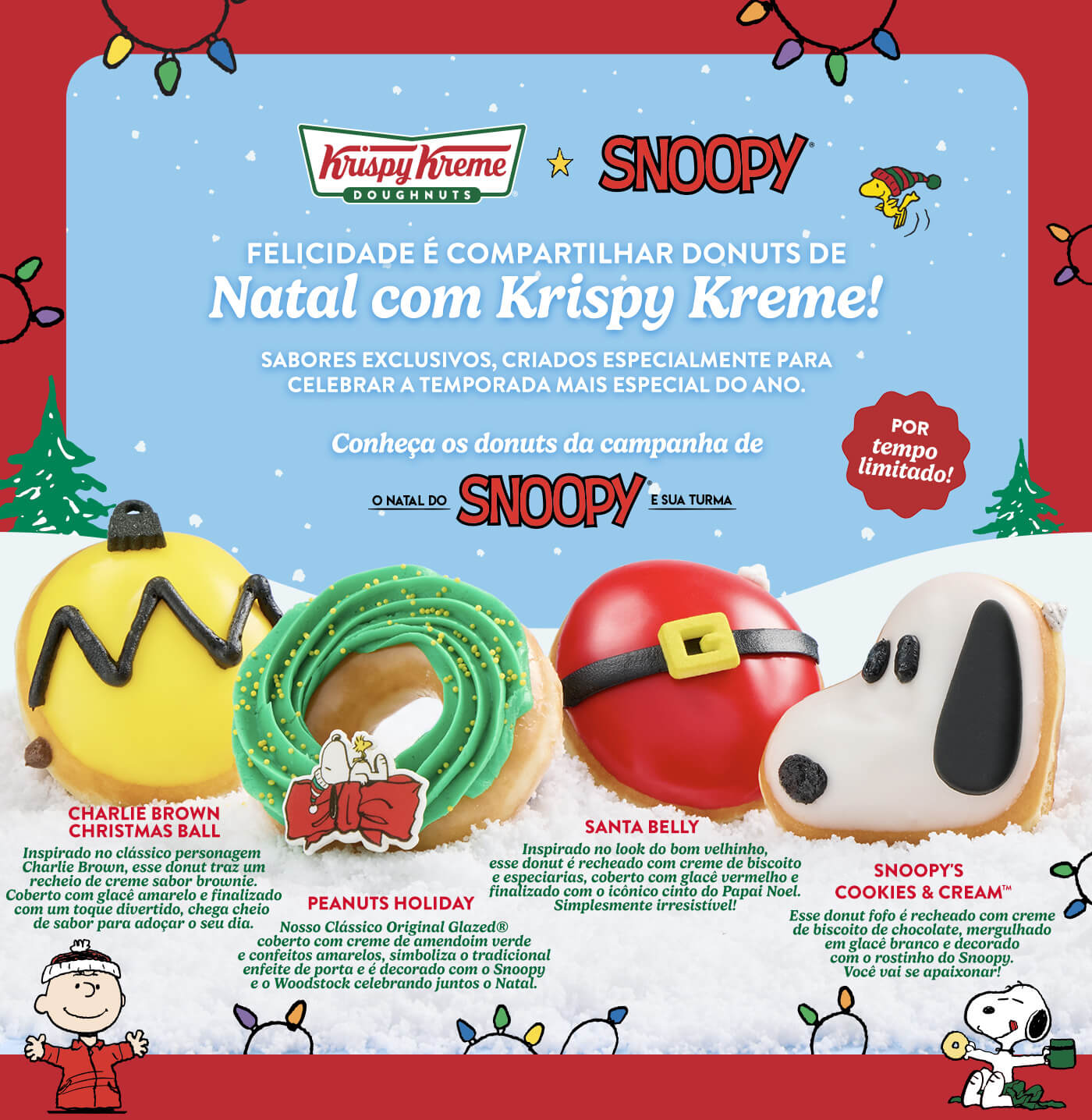 A Krispy Kreme se une globalmente ao universo do Snoopy, o cachorrinho mais amado do mundo, Charlie Brown e toda a turma em uma campanha temática – afinal, não existe Natal sem as pessoas (e personagens!) que você mais ama… E, claro, donuts irresistíveis.