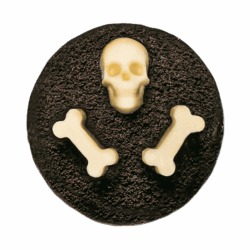 Caveirinha crocante por fora e cremosa por dentro, com recheio de creme e cobertura de biscoito de chocolate.